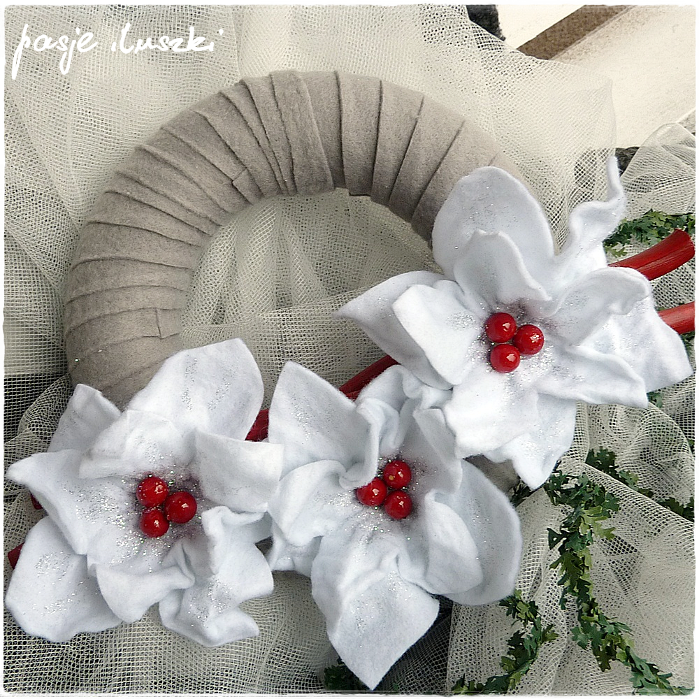 a zapewnia go filcowy wieniec z ręcznie wykonanymi poinsecjami :)