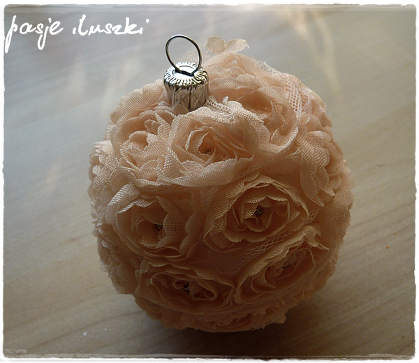 Na choince zawisły bombeczki - bazę stanowi styropianowa kula, do której